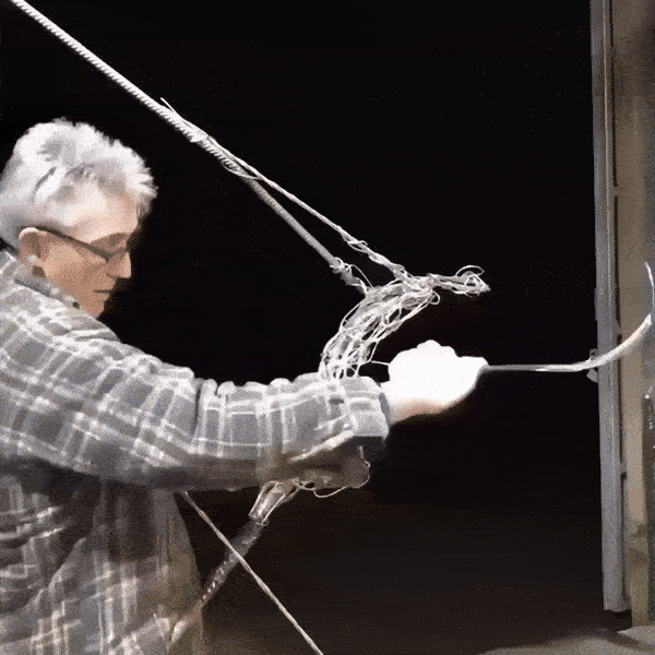 Dit is mijn laatste stuk: met de hand gevormd uit duurzaam metaaldraad, afgewerkt met een weerbestendige coating.